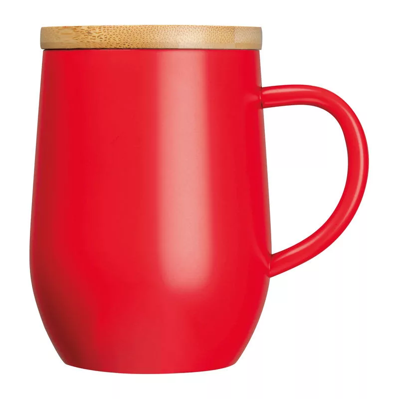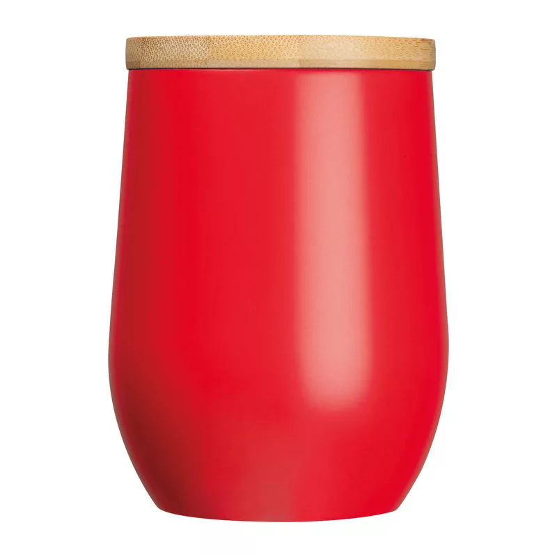 Duplafalú rozsdamentes acél termosz pohár fogantyúval, bambuszfedéllel és 300 ml űrtartalommal.