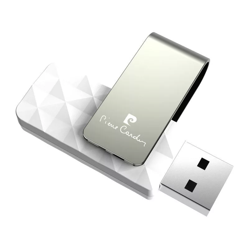 Elegáns forgatható kupakos Pendrive Pierre Cardintól 32 GB kapacitással. Az USB időtlen kivitelben készült fehér vagy fekete színben, ezüst borítással. Díszdobozba csomagolva, eredetiségigazolással együtt. (A termék Artisjus-díj köteles, az ár nem tartalmazza).