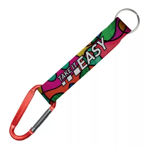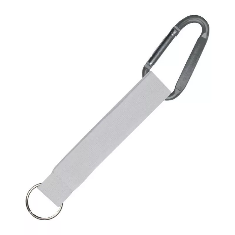 Karabineres kulcstartó, egyedi pánttal szatén anyagból.