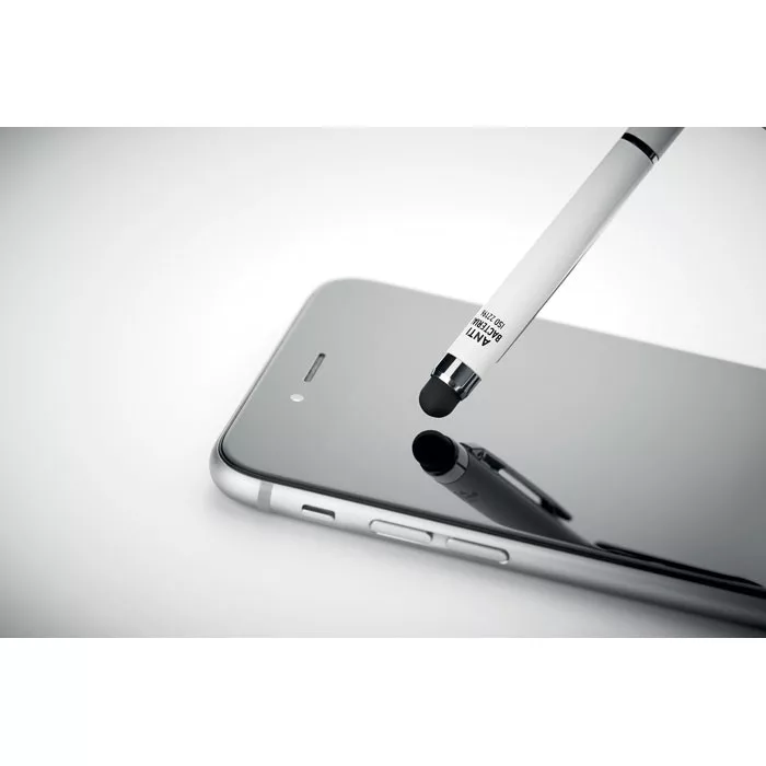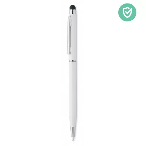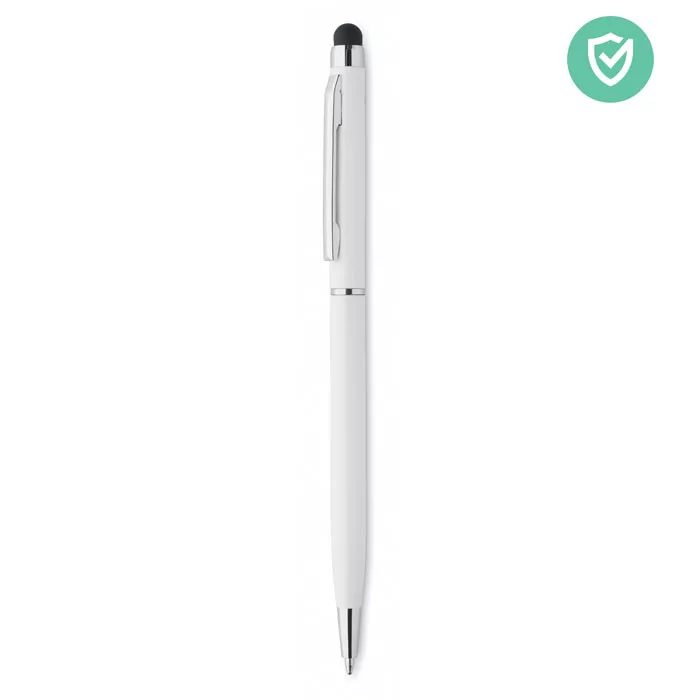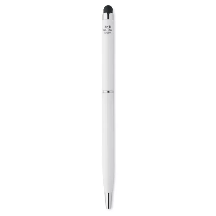 Csavarmechanikás érintőceruzás golyóstoll alumíniumból, fényes króm csíptetővel. Ez a toll speciális adalékot (nano ezüstöt) tartalmazó, antibakteriális tolltesttel rendelkezik, amely megakadályozza, hogy baktériumok telepedjenek meg a toll felületén. Az érintőceruzával egyszerűen kezelheti az érintőképernyőket anélkül, hogy hozzájuk kellene érnie. ISO 22196. A toll kéken író betétet tartalmaz.