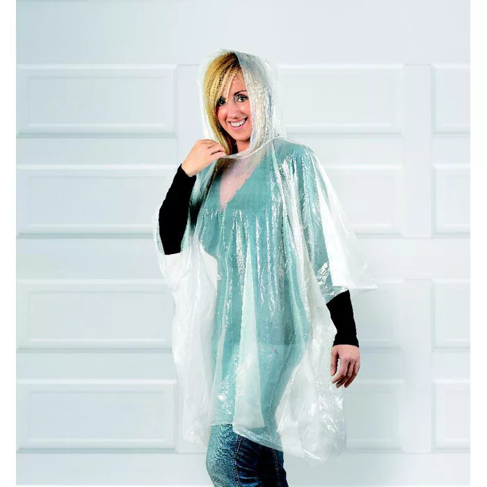 Átlátszó PE esőponcsó, gömb alakú AS tokban, akasztóval.