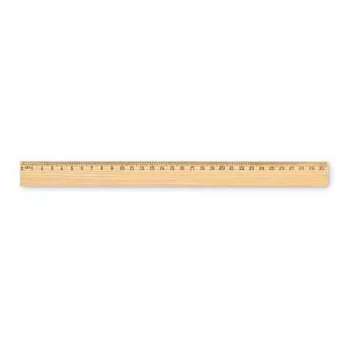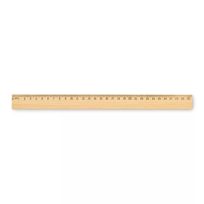 30 cm-es fenyőfa vonalzó, egyik oldalán centiméteres, a másikon hüvelykes skálával.