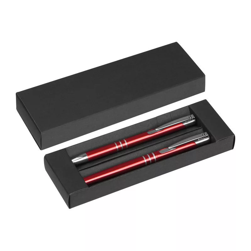 Alumínium toll szett, egy kéken író golyóstollal és egy rollertollal. Fekete dobozban szállítjuk.