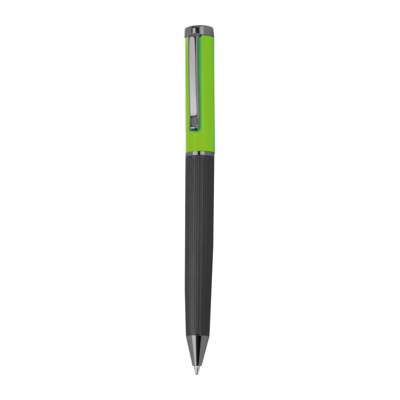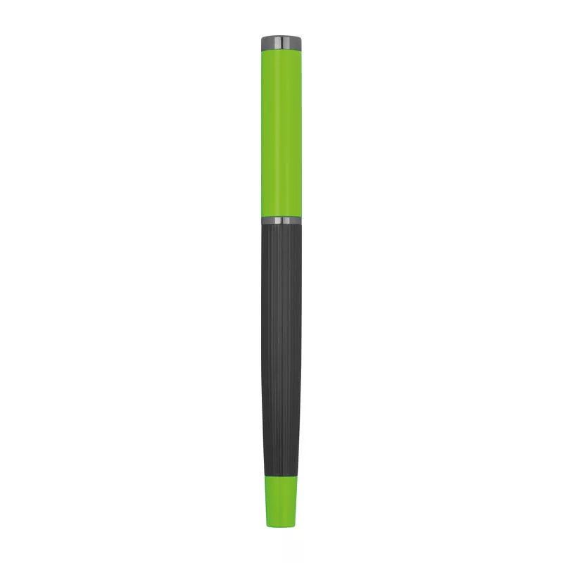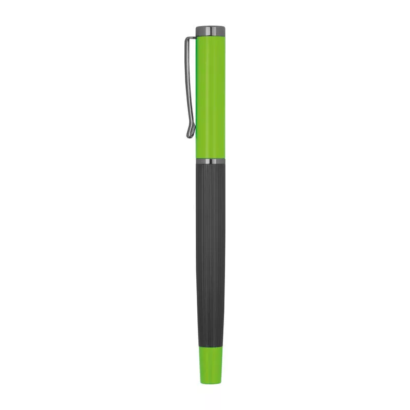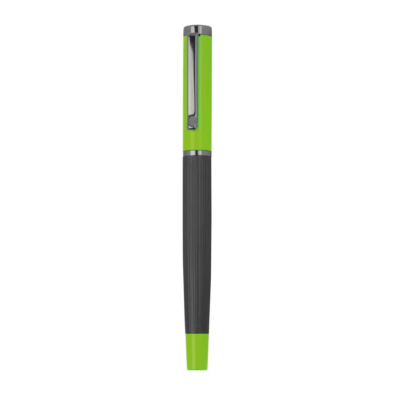 Kék tintás fém toll szett golyóstollal (800 m íráshossz) és rollertollal (500 m íráshossz), színben harmonizáló kihajtható dobozban.
