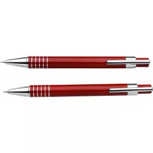 Lakkozott felületű golyóstoll fekete tollbetéttel és töltőceruza, színben hozzáillő dobozban.