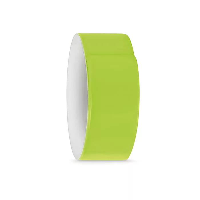 Neon színű fényvisszaverő PVC karkötő, fehér hátsó résszel. Csak promóciós célra. 32x3cm.