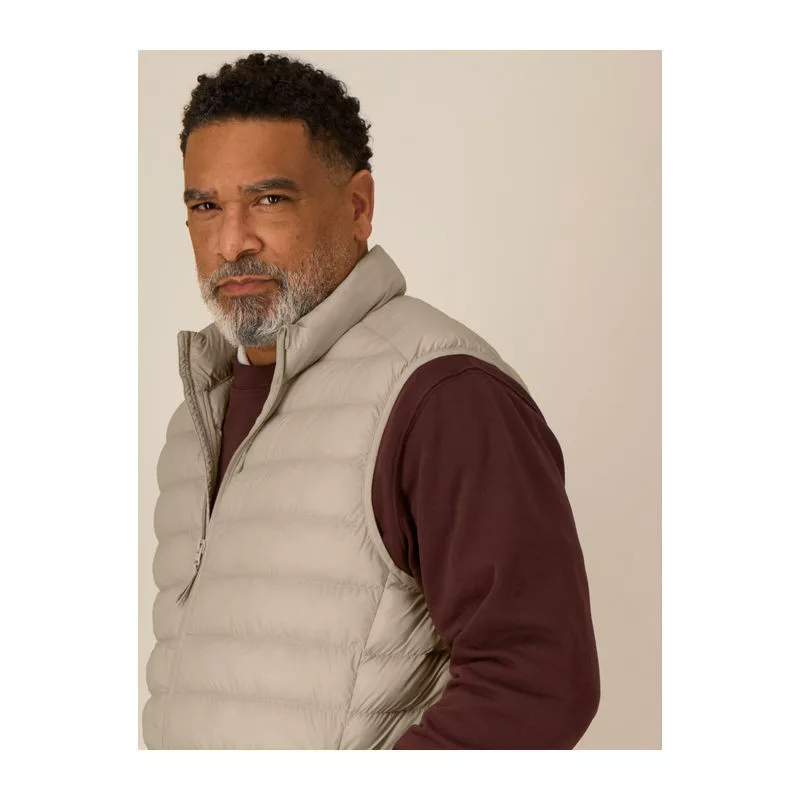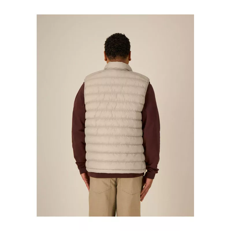 Ujjatlan kialakítás. Magas gallér. Fordított nejlon cipzár elöl, középen. Cipzáras zsebek díszszalaggal ellátott húzóval. Rugalmas szegőszalag a karkivágásnál. Teljesen steppelt kivitel. Oldalpanelek a jobb illeszkedésért. A belső varratok szegéllyel eldolgozva. Az alsó szegély állítható műanyag záróval és rugalmas zsinórral.