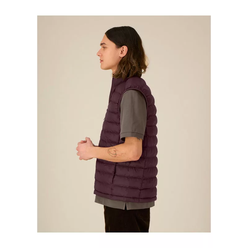 Ujjatlan kialakítás. Magas gallér. Fordított nejlon cipzár elöl, középen. Cipzáras zsebek díszszalaggal ellátott húzóval. Rugalmas szegőszalag a karkivágásnál. Teljesen steppelt kivitel. Oldalpanelek a jobb illeszkedésért. A belső varratok szegéllyel eldolgozva. Az alsó szegély állítható műanyag záróval és rugalmas zsinórral.