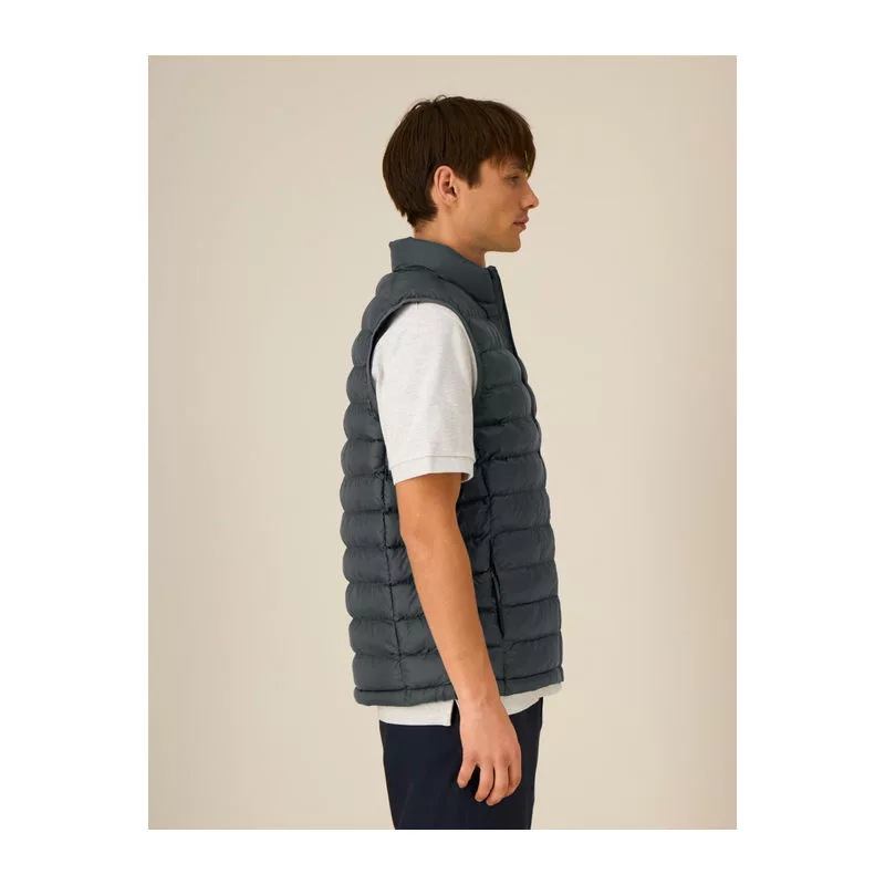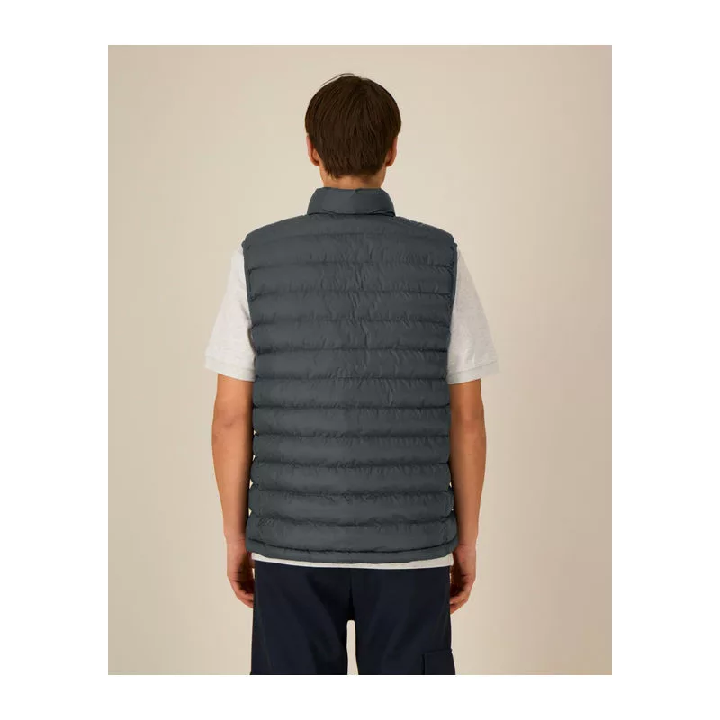 Ujjatlan kialakítás. Magas gallér. Fordított nejlon cipzár elöl, középen. Cipzáras zsebek díszszalaggal ellátott húzóval. Rugalmas szegőszalag a karkivágásnál. Teljesen steppelt kivitel. Oldalpanelek a jobb illeszkedésért. A belső varratok szegéllyel eldolgozva. Az alsó szegély állítható műanyag záróval és rugalmas zsinórral.