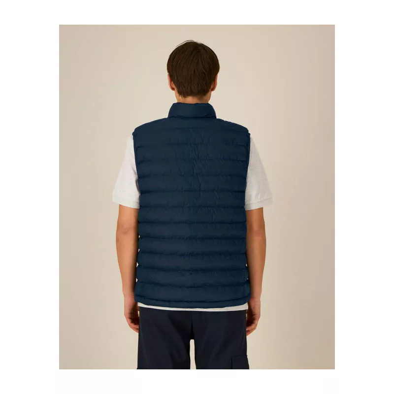 Ujjatlan kialakítás. Magas gallér. Fordított nejlon cipzár elöl, középen. Cipzáras zsebek díszszalaggal ellátott húzóval. Rugalmas szegőszalag a karkivágásnál. Teljesen steppelt kivitel. Oldalpanelek a jobb illeszkedésért. A belső varratok szegéllyel eldolgozva. Az alsó szegély állítható műanyag záróval és rugalmas zsinórral.