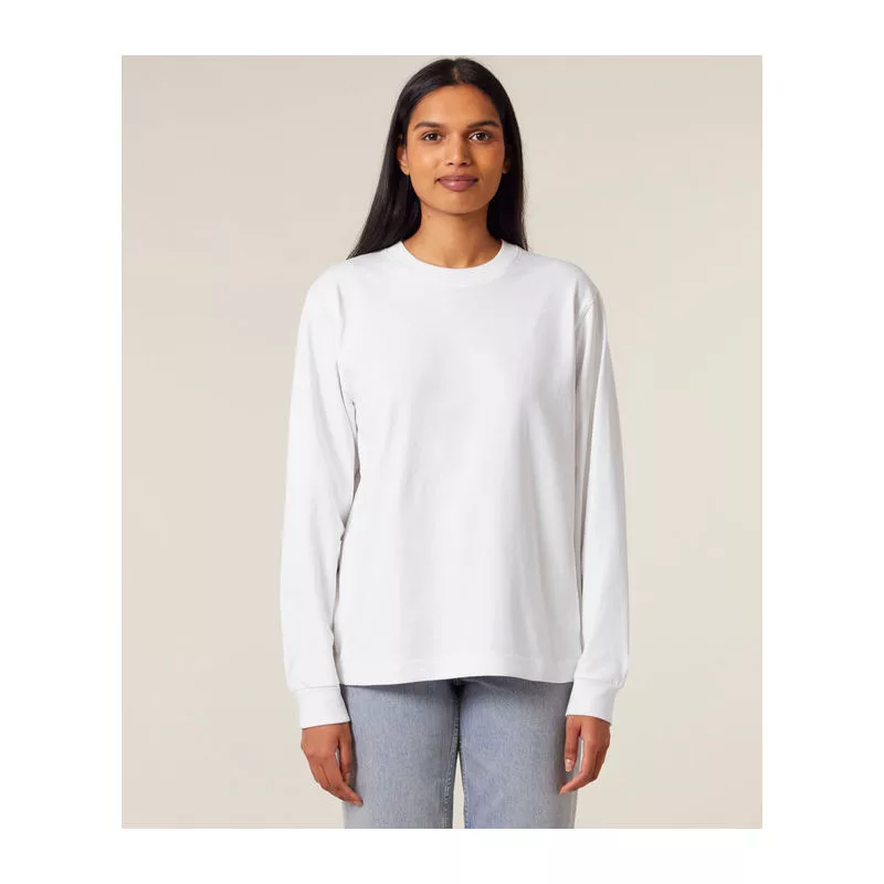 Uniszex, nehéz anyagú, hosszú ujjú póló, amely modern, stílust sugároz. 100% organikus pamutból készült, így tökéletes választás az átmeneti időszakokra vagy réteges öltözködéshez. Kiválóan alkalmas egyedi emblémázáshoz.