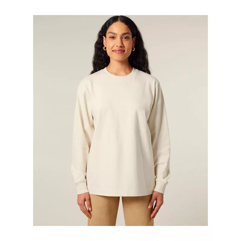Uniszex, nehéz anyagú, hosszú ujjú póló, amely modern, stílust sugároz. 100% organikus pamutból készült, így tökéletes választás az átmeneti időszakokra vagy réteges öltözködéshez. Kiválóan alkalmas egyedi emblémázáshoz.
