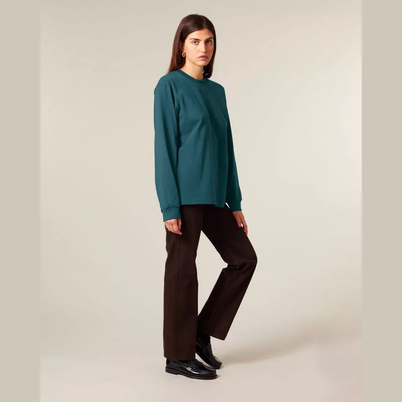 Uniszex, nehéz anyagú, hosszú ujjú póló, amely modern, stílust sugároz. 100% organikus pamutból készült, így tökéletes választás az átmeneti időszakokra vagy réteges öltözködéshez. Kiválóan alkalmas egyedi emblémázáshoz.
