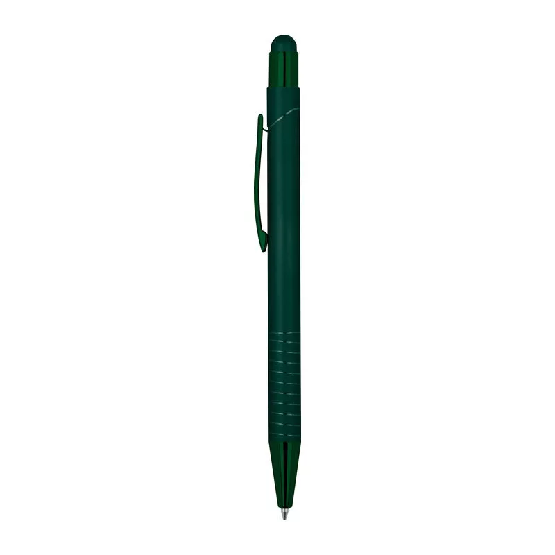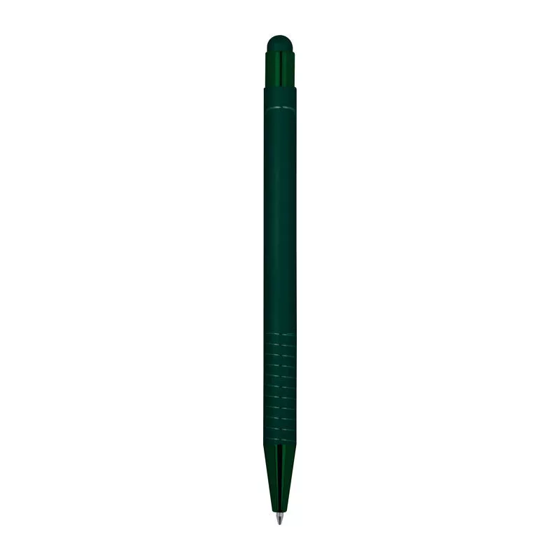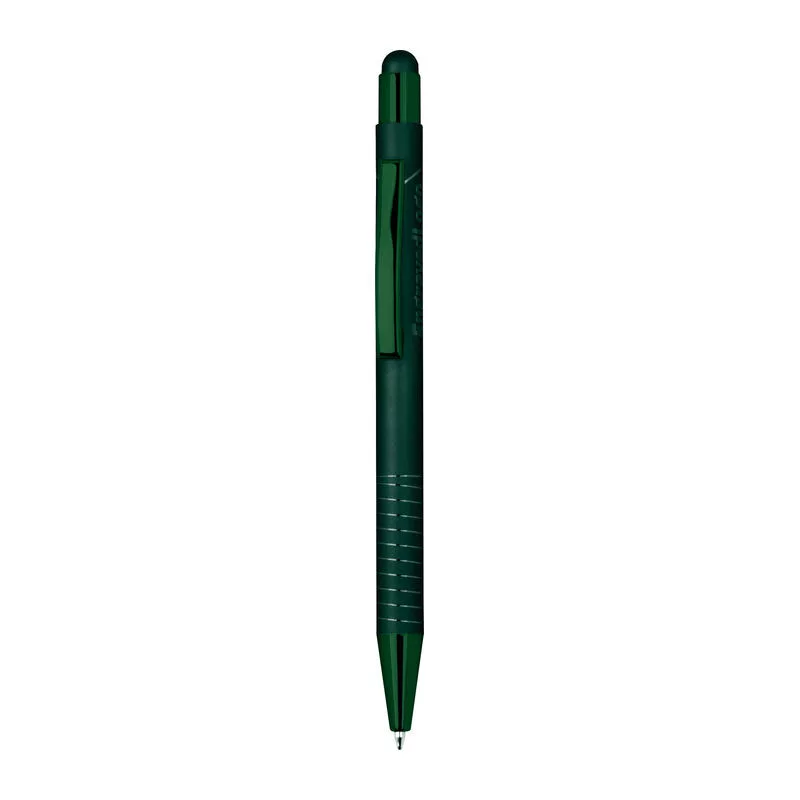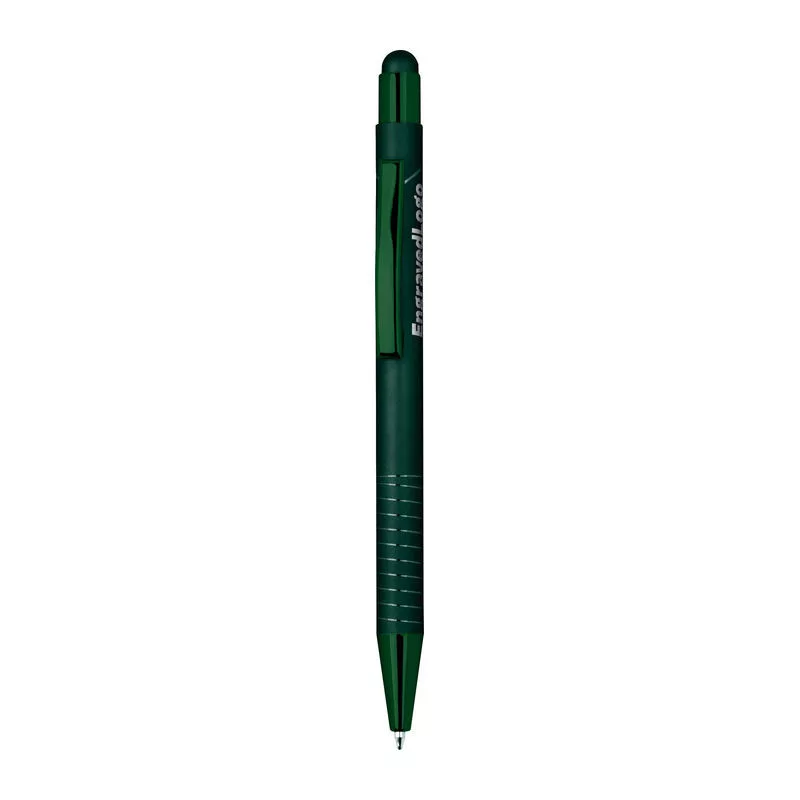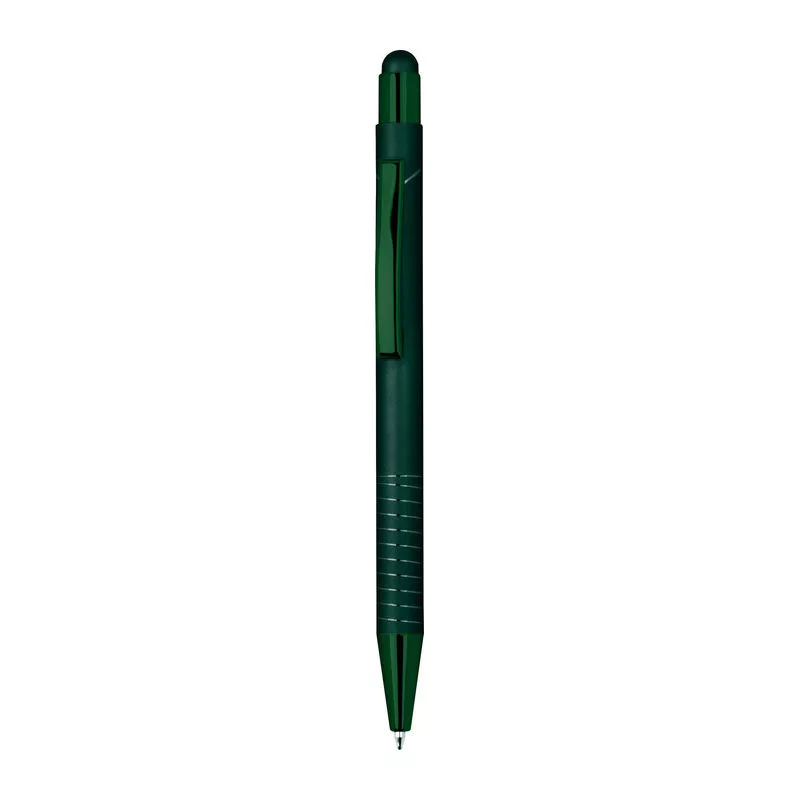 Golyóstoll integrált érintővel okostelefonokhoz és táblagépekhez, fényes és a termék színével azonos tükröződő felülettel, kék tintával.