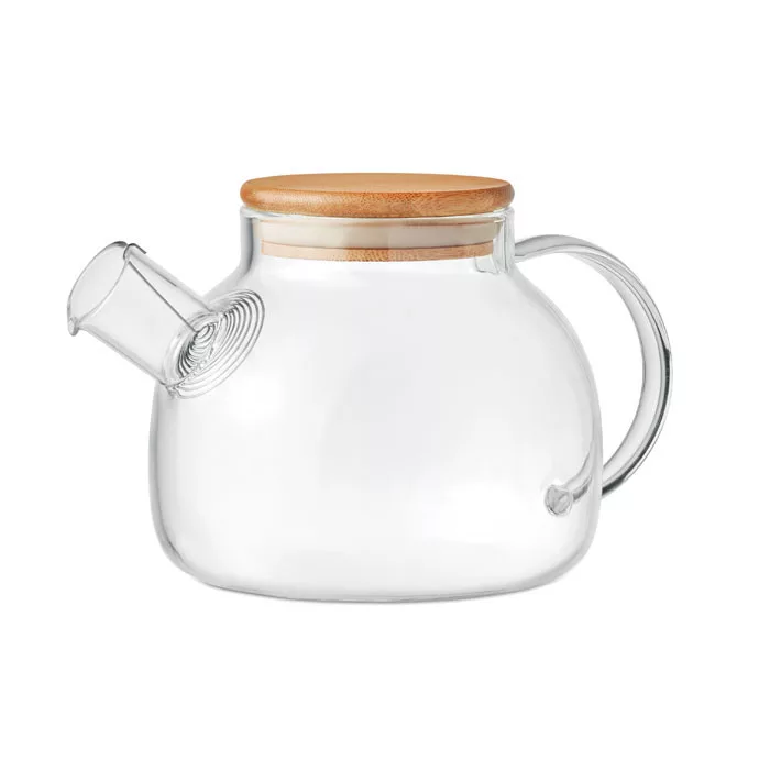 Boroszilikát üveg teáskanna rozsdamentes acél szűrővel, bambusz fedéllel. Űrtartalom 850 ml. A bambusz természetes anyag, termékenként szín- és méretbeli eltérések jelentkezhetnek, ami befolyásolhatja a dekoráció végső eredményét.