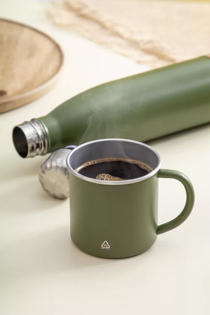 Egyfalú újrahasznosított rozsdamentes acél bögre, 300 ml. Kraft papír dobozban.