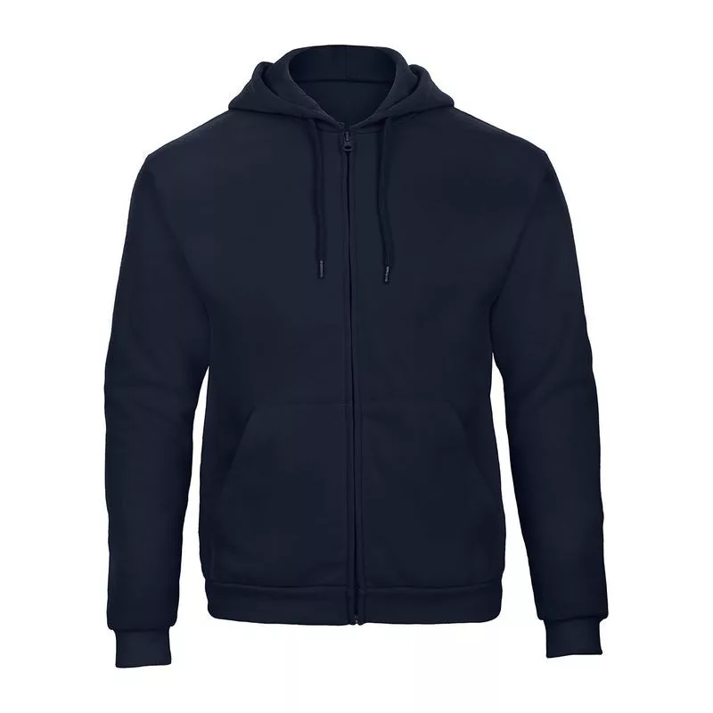 Cipzáras kapucnis férfi pulóver 50% poliészter, 50% pamut, polár belsővel, "B&C No Label" technológiával. Sokoldalú termék, mindenféle tevékenységhez tervezve.