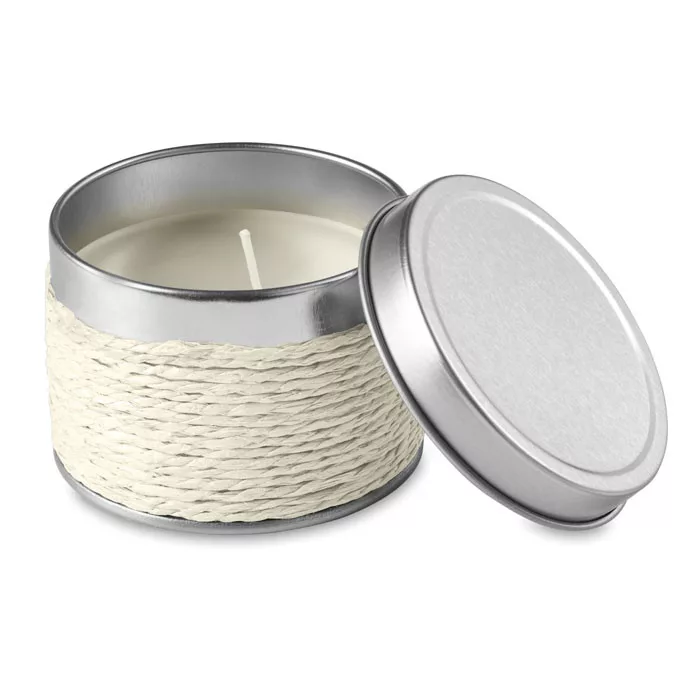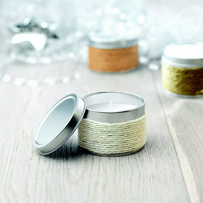 Illatosított növényi viasz gyertya 60 g, dekoratív ón dobozban.