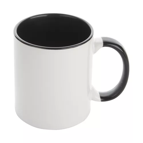 Szublimációs technológiával emblémázható, fehér kerámia bögre kartondobozban. A bögre belseje és füle megegyező színű, 350 ml.