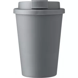 Kávéspohár csavaros fedéllel és felpattintható ivórésszel. Jó hőtartó, hideg és meleg italokhoz is használható. Űrtartalom: 350 ml. PP műanyag.