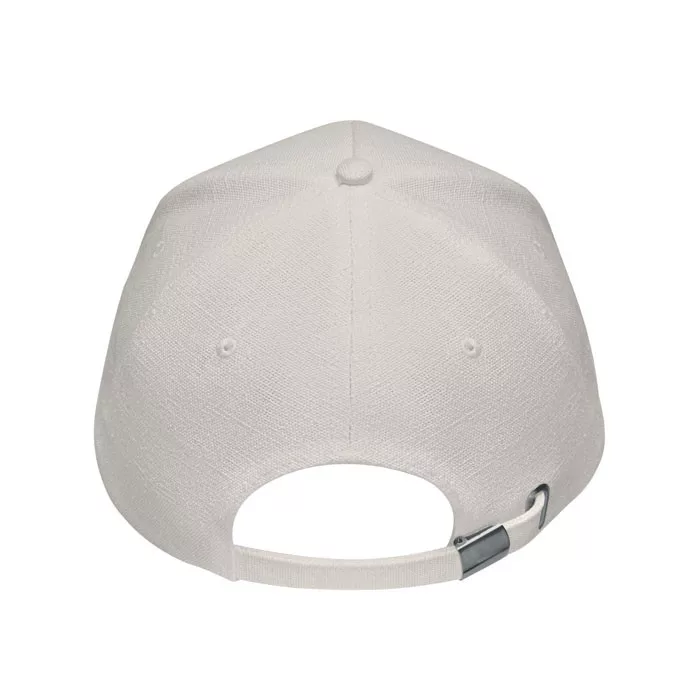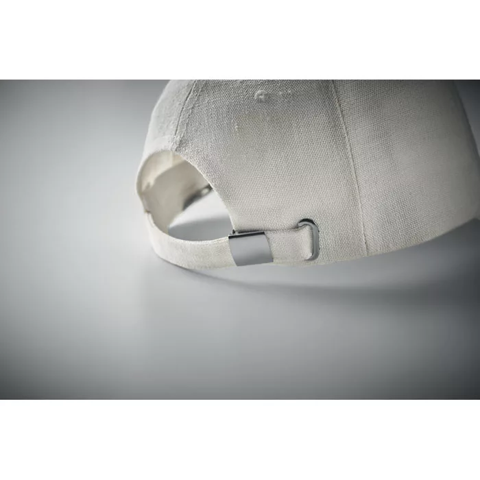 5 paneles baseball sapka, 370 g. vastag, 100% kenderszövet anyagból, réz csattal záródó állítható pánttal. Stílusos sapka, amely megvédi arcát a naptól. A 100% pamut, poliészter-pamut kevert szálas vagy poliészter baseball sapkák mellett most egy 100% tiszta kenderrostból készült változatot is kínálunk. Ez a természetes és környezetbarát anyag UV-álló és segít csökkenteni az izzadást a rostok természetes lélegző képességének köszönhetően. Hátoldalán az állítható pánt ugyanabból a kenderszövetből készül, egy ezüst színű sárgaréz csat biztosítja a tökéletes illeszkedést. 5, egyező színű hímzett szellőzőlyukkal. Méret: 7 1/4.