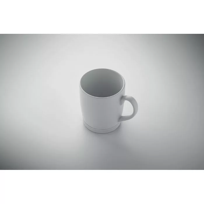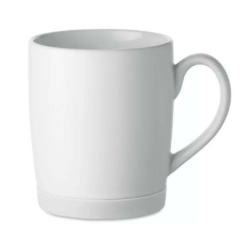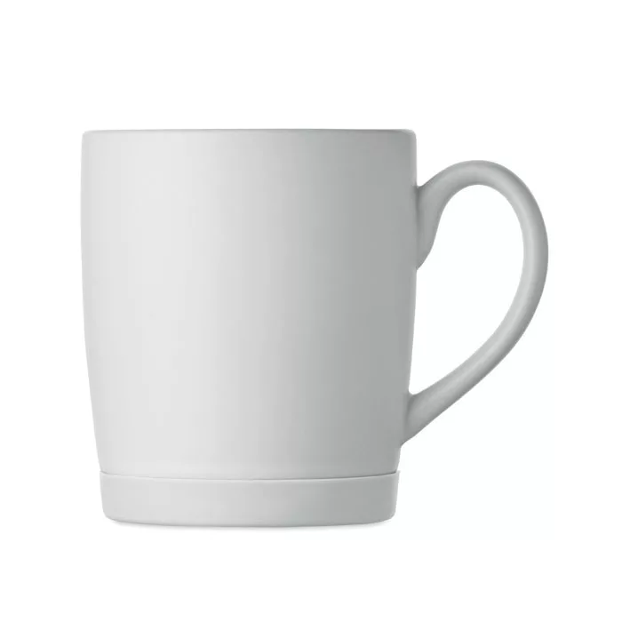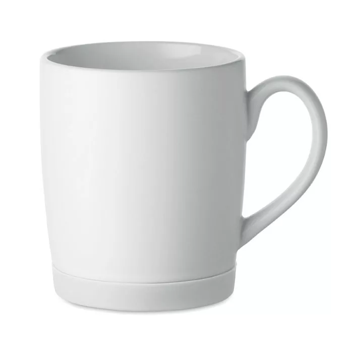 Kerámia bögre fehér matt felülettel és stabil szilikon talppal. Űrtartalom: 300 ml. Egyesével, fehér kartondobozba csomagolva.