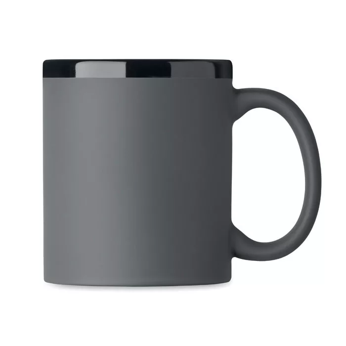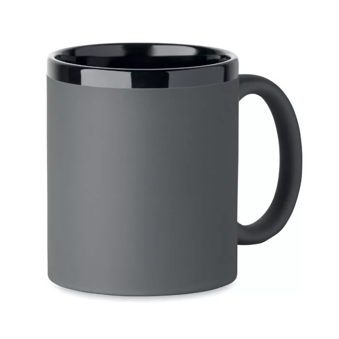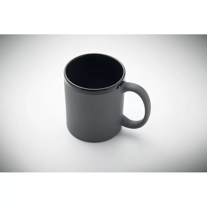 Kerámia bögre selymes tapintású külső bevonattal lézergravírozáshoz és fekete belső oldallal, illetve peremmel. Űrtartalom: 300 ml. Egyesével, fehér kartondobozba csomagolva.
