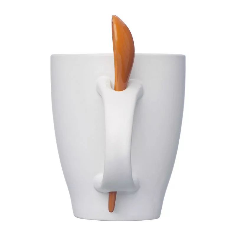 Kerámia bögre kanállal, vidám színekben 250 ml űrtartalommal. Reggeli kávézáshoz, hogy jókedvűen induljon a nap!
