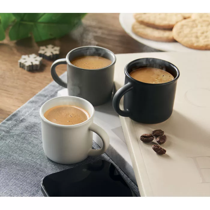 Kerámia eszpresszó csésze. Űrtartalom: 40 ml. Egyesével, fehér kartondobozba csomagolva.