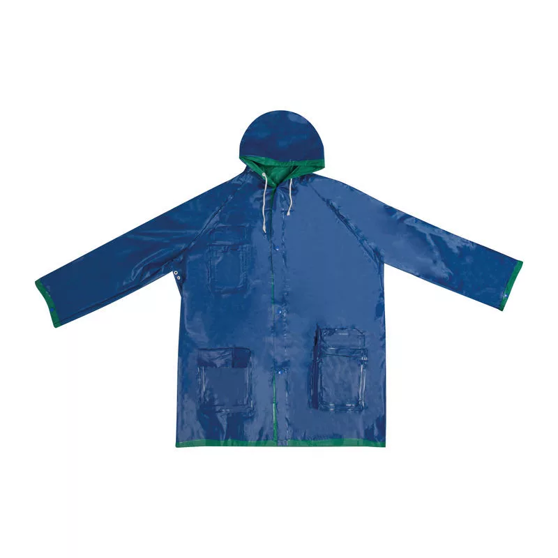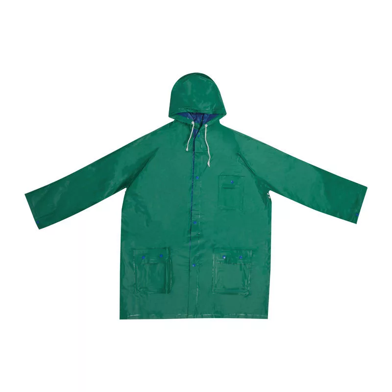 Kétszínű kifordítható esőkabát PVC-ből, XL méretben, patenttal, kapucnival.