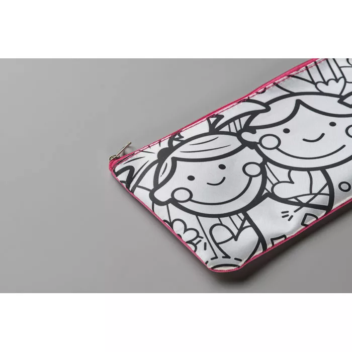 Kiszínezhető tolltartó 600D poliészterből, 4 filctollal.