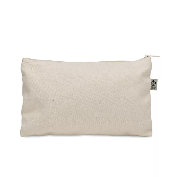 Biopamutból készült kozmetikai táska színes cipzárral. 340 gr/m².