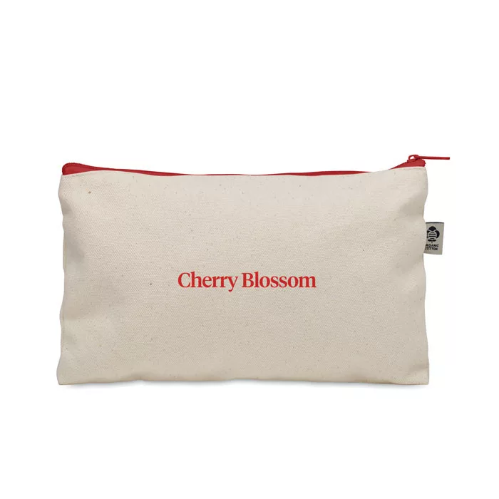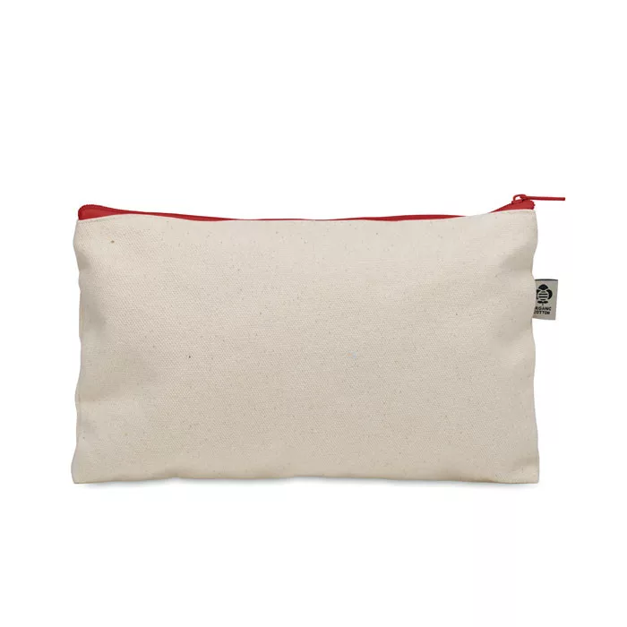 Biopamutból készült kozmetikai táska színes cipzárral. 340 gr/m².