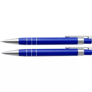 Műanyag tollkészlet. Tartalma: töltőceruza (0,7 mm) és golyóstoll fekete tollbetéttel, színben illeszkedő, mágneses záródású tolltartóban.