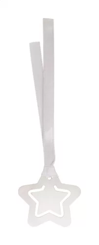 Rozsdamentes acéllemezből készült karácsonyi oldaljelölő ezüst szalagon.