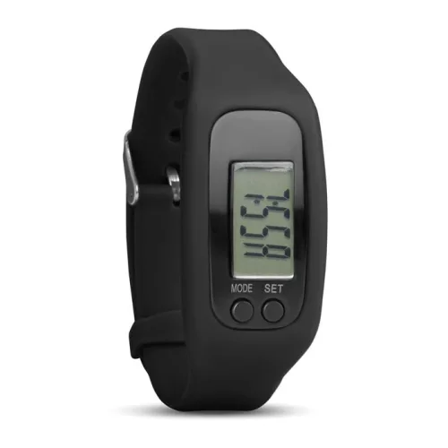 Lépésszámláló karkötő. Egyéb funkciók: távolság- és időmérés, kalóriaszámlálás. A működéshez szükséges 1 db AG10 elemmel szállítjuk.