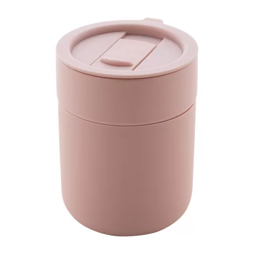 Szilikon borítású kerámia utazópohár PP műanyag ivófedéllel, 300 ml.