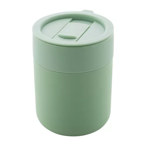 Szilikon borítású kerámia utazópohár PP műanyag ivófedéllel, 300 ml.