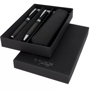 Szénszálas golyóstoll és rollerball tollkészlet. Csomagolása védőtasak és Luxe ajándékdoboz. Fém.