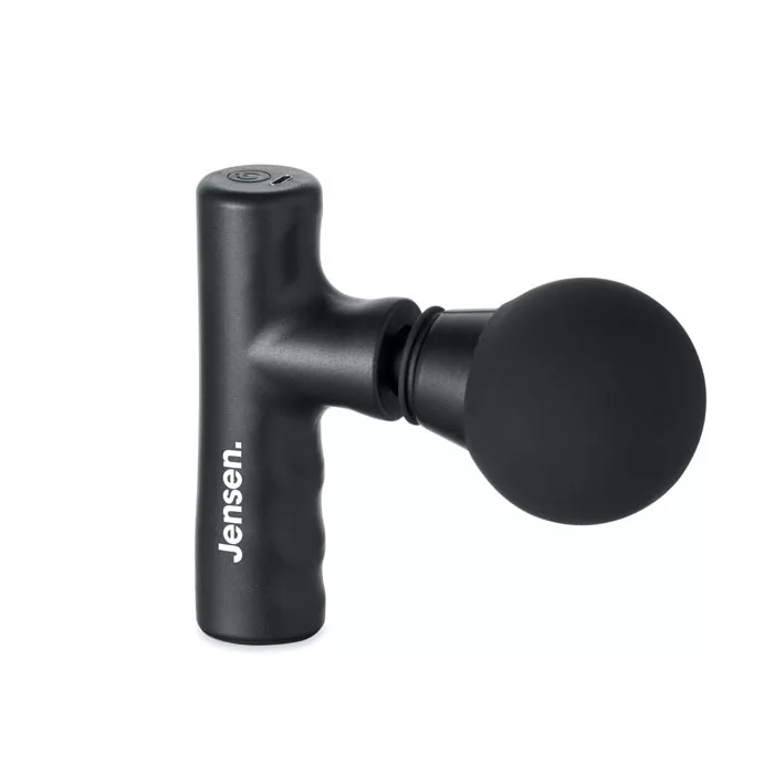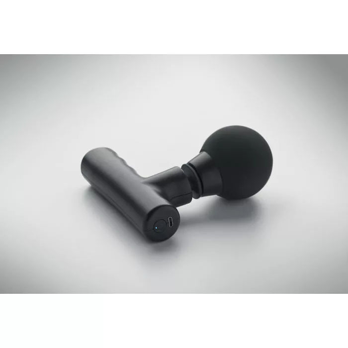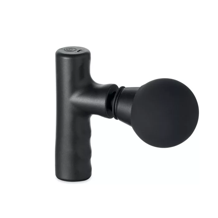 Masszázspisztoly ABS anyagból, 2 sebességfokozattal. Újratölthető 1200 mAh akkumulátorral. RPET tasakban.