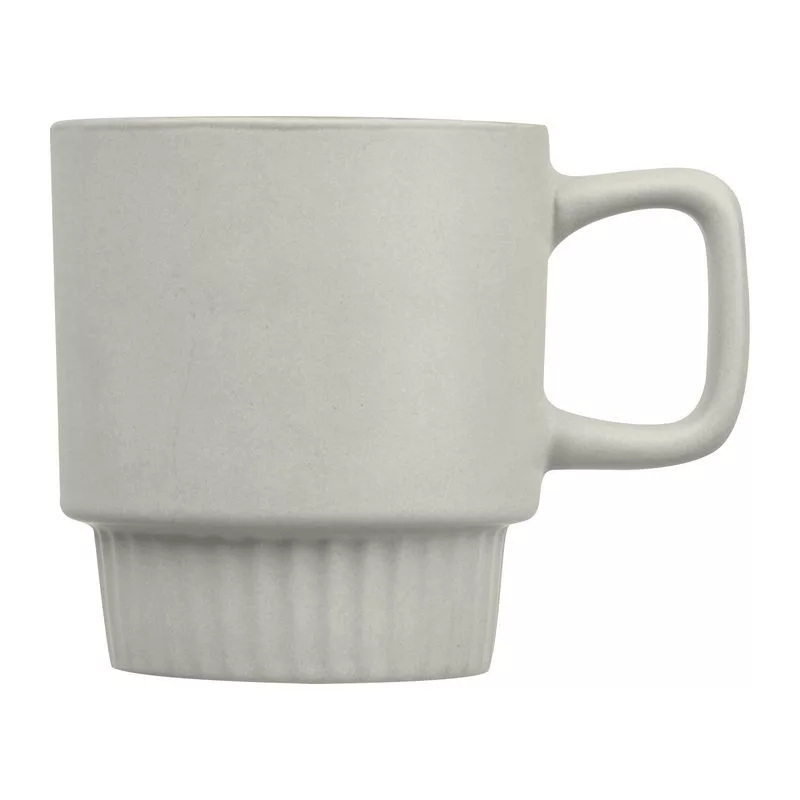 Kerámia bögre bordázott alsó résszel, 300 ml kapacitás. Matt felület, kényelmes fogás, ideális forró italokhoz.