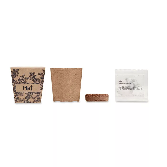 Biológiailag lebomló, tőzeg ültetőcserép menta magokkal. EU-ban készült. Ültetőközeg koronggal szállítjuk.