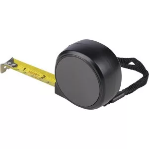 ABS műanyagból készült mérőszalag mágneses oldallal, 5 m hosszúságú és 19 mm szélességű fém szalaggal, centiméter- és inch-beosztással. Felül elhelyezett nyomógomb a rögzítéshez/kioldáshoz, valamint poliészter csuklópánt. Egyenként csomagolva illusztrációval ellátott barna kartondobozban.