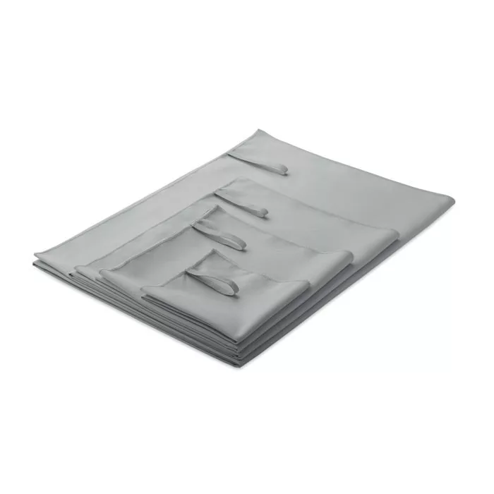 Mikroszálas törölköző 90% poliészterből és 10% poliamidból, rugalmas pánttal. Könnyű és gyorsan szárad. Méret: 30x50 cm.