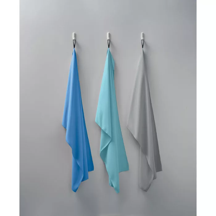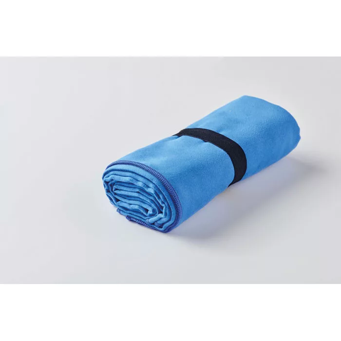 200 gr/m² vastag, bársonyos tapintású, mikroszálas sport- vagy strandtörölköző, patentos pánttal.