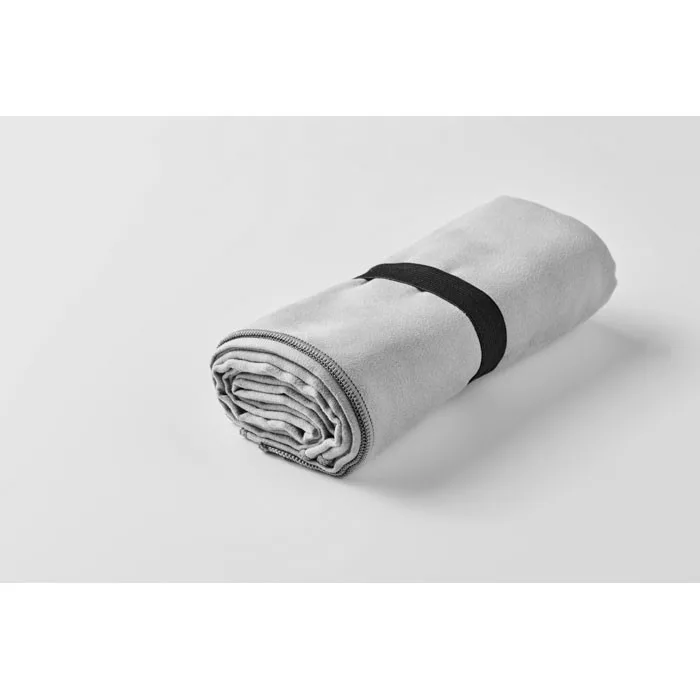 200 gr/m² vastag, bársonyos tapintású, mikroszálas sport- vagy strandtörölköző, patentos pánttal.