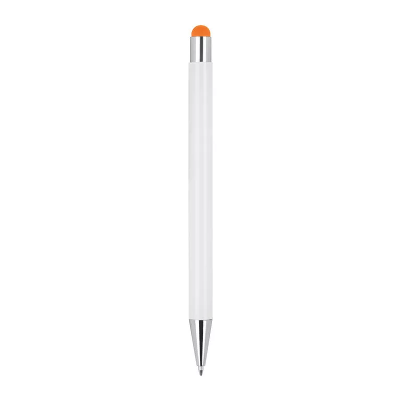 Alumínium golyóstoll ezüst színű kiegészítőkkel, érintő funkcióval és kék színű tollbetéttel.