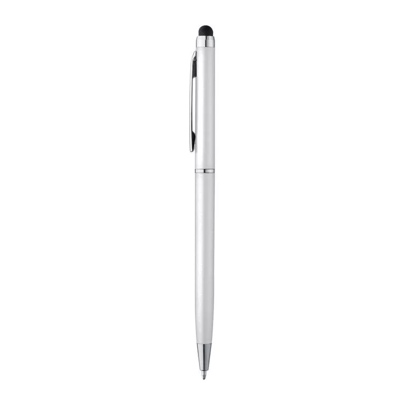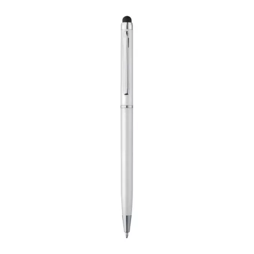 Elegáns, műanyag csavaró mechanikás vékonytestű toll, kék betéttel, érintő funcióval, mely alkalmas okostelefonok és tabletek érintőképernyőjéhez is.