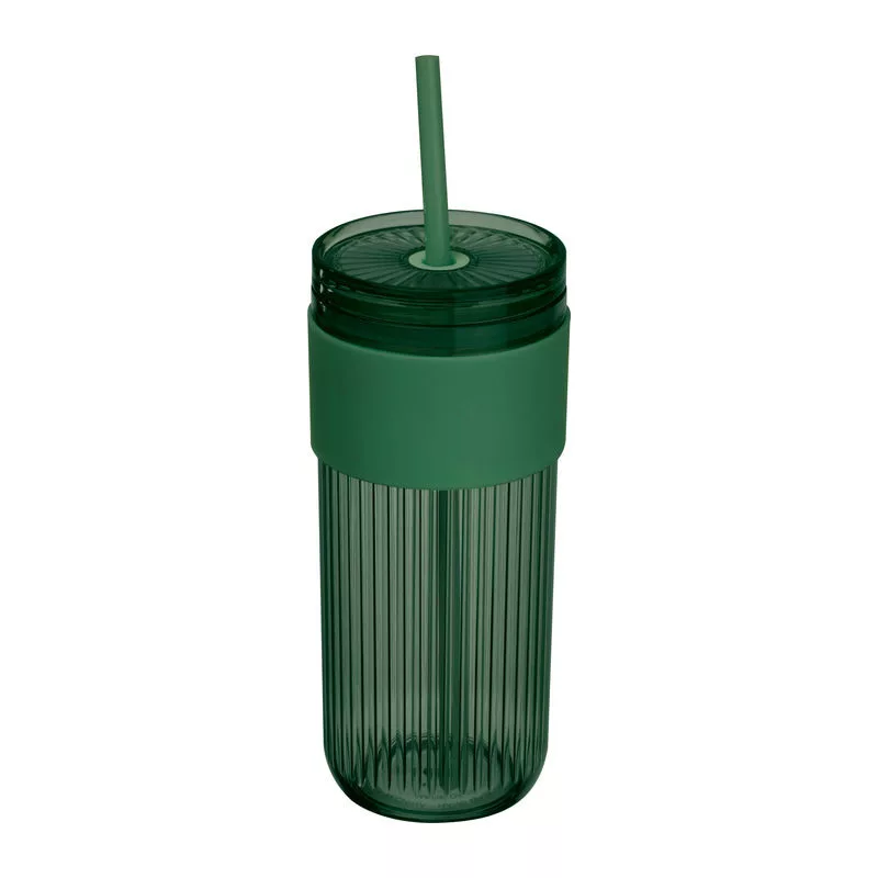 Műanyag pohár szívószállal, 660 ml (ø 8,2 x 19 cm, Zöld)