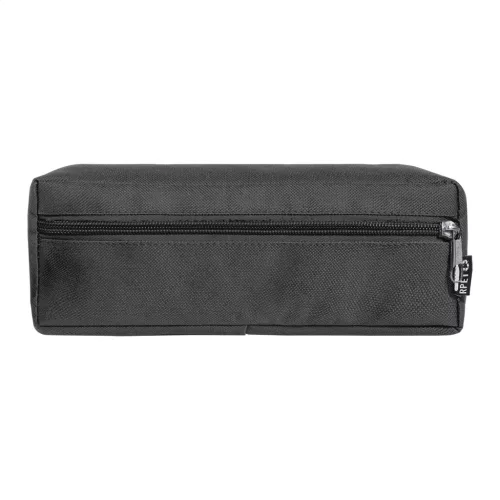 Cipzáros RPET poliészter anyagú tolltartó. 600D RPET poliészter, megkülönböztető RPET címkével.